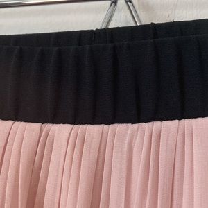 barbie aesthetic ๐ worthington brand size 12 pink skirt. Stretchy waistband. Double pleated pink sheer top layers of chiffon feel fabric. Black trim details on skirt waistband and at skirt hem layers ends.