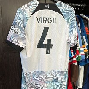 Put your unwavering fandom on display by adding this Virgil Van Dijk 2022/23 Away Vapor Match Authentic Player Jersey to your Liverpool collection. This Nike gear features VaporKnit and Dry-FIT technology made to the specifications of the players that work together to keep you dry and comfortable all game long. Its exciting design and Liverpool graphics let you look and feel like the real deal and will get you pumped to cheer on your favorite team as they take the pitch.