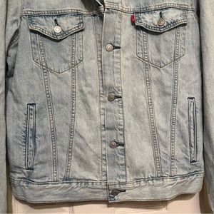 Classic Levi’s Trucker Jacket in a light to medium wash. Shows minimal wear and no stains or rips.