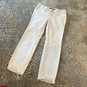 JOES KIDS SKINNY WHITE DISTRESSED JEANS WITH HOLES AND FRAYED HEMS ABSOLUTELY THE BEST FIT AND ADORABLE ON. ADJUSTABLE WAIST.