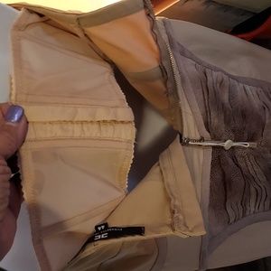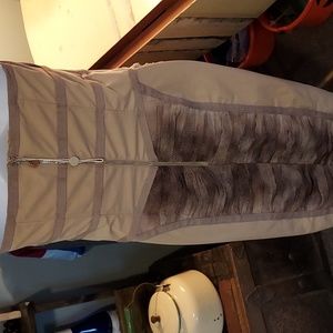 Gorgeous, unique, and a stand-out "look at me dress" in any situation! Gathered at the wsist, back zip, shades of brown animal print adorns the front and back of this knockout dress. Hem hits at knee length and has a sewn in bra for extra support.