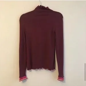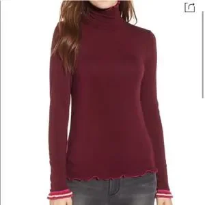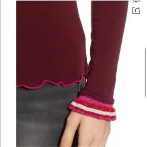 Sparkly stripes accentuate the ruffled cuffs of this retro-inspired turtleneck with lettuce-edge trim. This style is part of a festive collaboration between Splendid and Margherita Missoni. Style Name: Splendid X Margherita Dolce Vita Ruffle Trim Turtleneck. Style Number: 5767600.