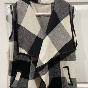 SHEIN Women’s Plaid / Checkered Soft Vest Jacket - black & white, size M with Pockets