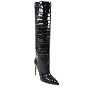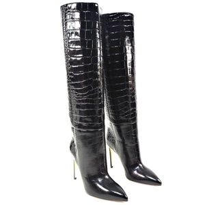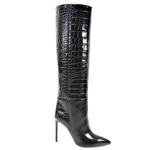 PARIS TEXAS 🇮🇹 WOMEN'S BLACK EMBOSSED CROCO STILETTO FASHION BOOTS