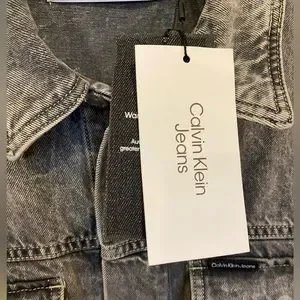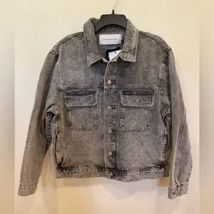 Calvin Klein Men’s Palmer Denim Utility Trucker Jacket NWT Gray Relaxed Fit M