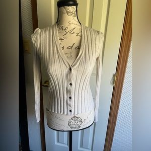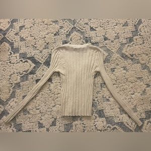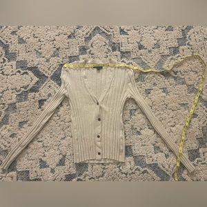 FINAL OFFER! American Eagle Size S button down long sleeve shirt. Comfortable and stretchy. Cream in color. Measurements provided.