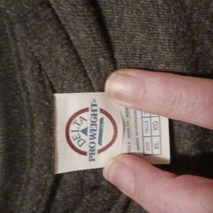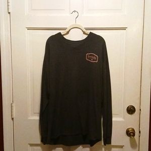 back of charcoal grey long sleeved t-shirt.