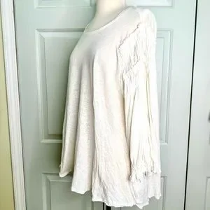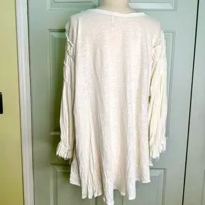 Free People Oversized Linen Cotton Blend Ruched Long Sleeves Top Sz Large