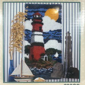 New in Box Sealed Caron WonderArt Latch Hook Kit #4122 Lighthouse Nautical Theme