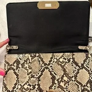 Beautiful Snakeskin print crossbody handbag and matching wallet!! Used only a couple times. In excellent condition!! Strap is adjustable!