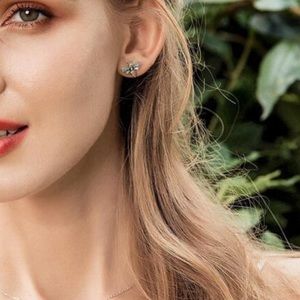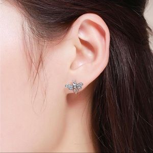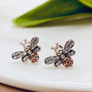 925 Sterling Silver Lovely Busy Bee Pave CZ Stud Earrings