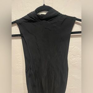 LIKE NEW - Vintage James Perse long black dress, rayon (looks and feels like silk) with a cowl neck neckline/collar. Sleeveless, full length with a slight mermaid finish at hem.