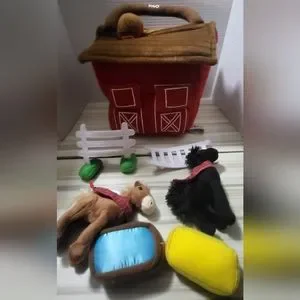 FAO Schwarz Soft Plush Kids Red 12” Horse Barn Toy With Horses And Accessories