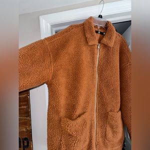 Missguided oversized teddy jacket in a size 8. Can fit a M-L. Overall good used condition, but has wear as shown in photos.
