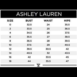 Ashley Lauren long metallic sleeveless A-Line evening dress has a scoop neckline and long train. The wrap skirt is complete with pockets and slit. Metallic Brocade A-Line Scoop Neckline Pockets Train. New with tags in plastic garment bag in various sizes.