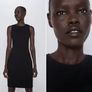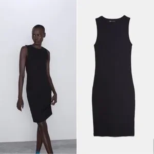 NWOT ZARA BLACK TEXTURED TUBE MIDI DRESS