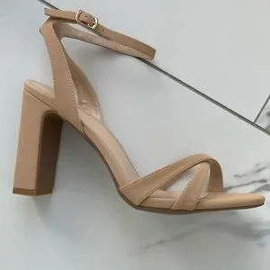 Nude short heel sandals