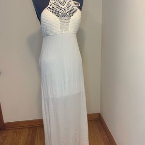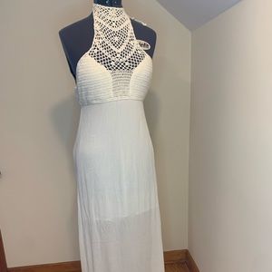 crochet lace bodice with a halter neckline tying at back sweet and sexy.
