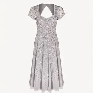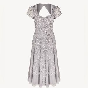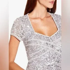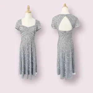 Adrianna Papell Sequin Embellished Cocktail Midi Dress Silver Size 10