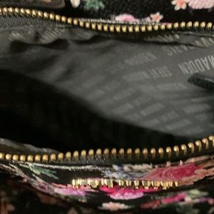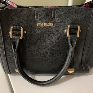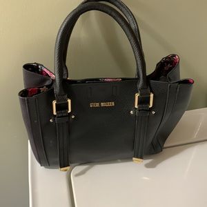 Steve Madden Handbag ( black leather, floral inside, super cute) removable inside bag. BRAND NEW CONDITION