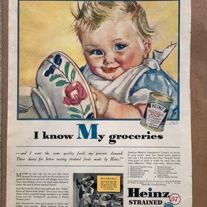 This is an original magazine ad, not a reproduction of Heinz Strained Baby Foods (now known as Heinz Nature by Kraft Heinz Products) circa 1930’s.