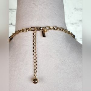The color: Blue stones Gold plated (please note, pic of necklace off mannequin is more accurate to the color)