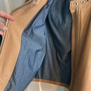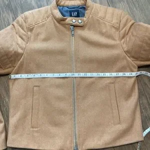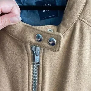 Sold eb GAP Brown Camel Quilted Sleeve Wool Blend Zip Moto Jacket