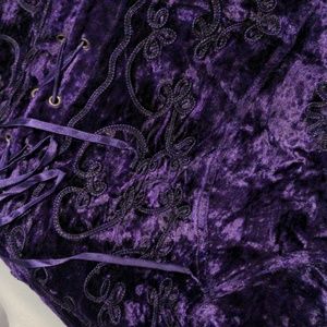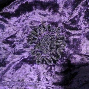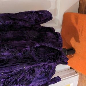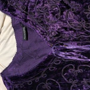 An incredible find!!! Gorgeous purple velvet with ribbon ties front and sleeve pheasant style applique embroidery design, ribbon sleeves, trim and tunic look.