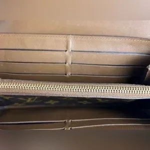 12 card slots and monogram zippered coin slot.