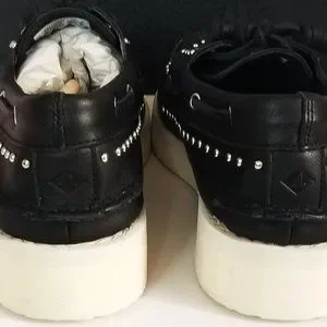 In collaboration with Rebecca Minkoff, this classic boat shoe gets a stylish lift with a tumbled-leather upper, bold Vibram® outsole and polished metal studs.