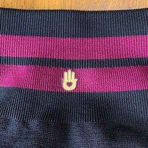 These Spiritual Gangster Love Sculpt Jacquard Leggings offer stylish support via a flattering, three-tiered high waist. They're black with purple hearts on them and they are in VGUC. The only flaw I can see is that the hand transfer on the back has slightly come off.