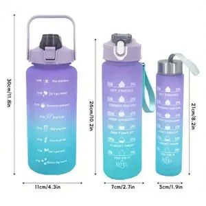 3pcs Stay Hydrated Anywhere: Portable Leakproof Water Bottle With Time Marker & Lanyard - Perfect For Adults & Families!