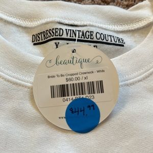 White cropped boutique, bride sweatshirt. Size XL. NWT white with sparkly gold lettering. I typically wear between a M-L bought larger so everything would be covered forgot all about it when I got married so it was never worn! Smoke free household! Open to offers!