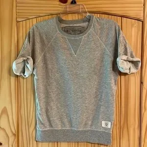 This is a size small regular cut women’s short sleeve gray sweatshirt. Used good condition.