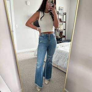Medium wash distressed flare jeans from Altar’d State. Material is very stretchy and comfortable. Only worn a handful of times.