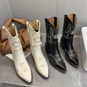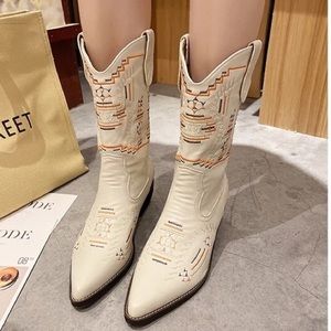FESTIVAL EMBROIDERED cream Bohemian Aztec boho Pointy toe Heel Western Boots