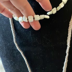 Such a unique piece from Free People. Rope and shell long necklace and then a shorter faux mother of pearl chocked NWT