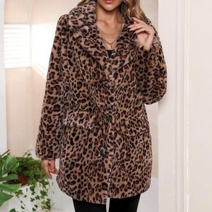 Luxe Leopard print Vegan Fur Button Oversized Jacket Coat