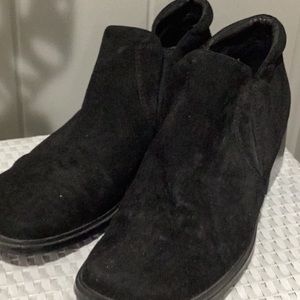 Ankle boots in black suede with squared toe.Previously owned, but minimally worn. Pristine condition.