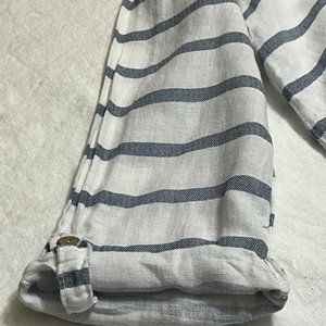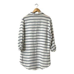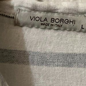 Viola Borghi Women's Shirt Dress Striped Linen Roll Tab Sleeve Size L Italy