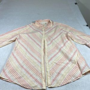Chicos Linen Button Down Shirt 2.5 size Striped Loose Tunic Top Perfect Sleeve relaxed fit