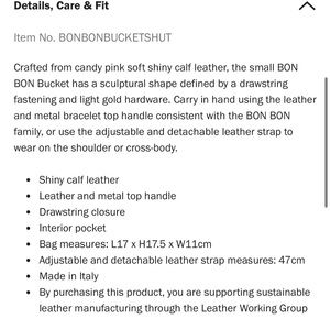 Crafted from candy pink soft shiny calf leather, the small BON BON Bucket has a sculptural shape defined by a drawstring fastening and light gold hardware. Carry in hand using the leather and metal bracelet top handle consistent with the BON BON family, or use the adjustable and detachable leather strap to wear on the shoulder or cross-body.
