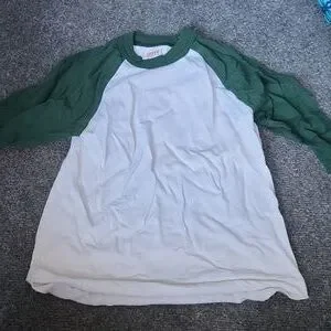 3/4 long sleeve green and white baseball shirt