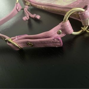 Cute and dainty little purse. This pink patchwork coach bag was rarely used so it is in excellent condition. Patchwork is a mix of coach canvas and leather, strap is leather with gold buckle and shows no signs of wear. Clean on the inside.