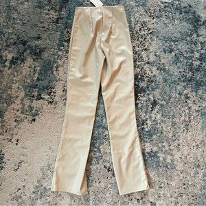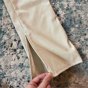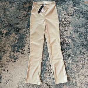 Stretchy and comfortable and has a little flare slit at the ankle. Perfect neutral color that is great for any season.