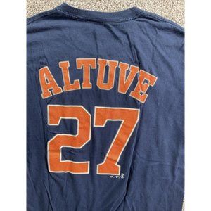 Majestic Houston Astros Shirt Mens Sz L Blue Jose Altuve MLB Baseball Spellout