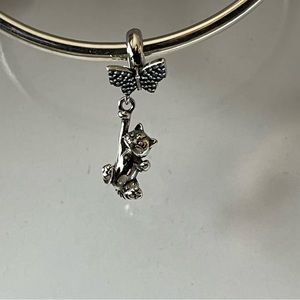 ๐ Sterling Silver Kitty Cat Hanging from Butterfly Charm