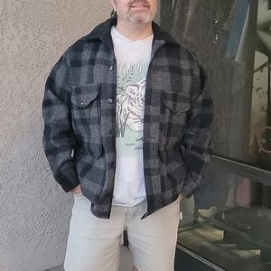 Vintage Filson 1980s Black & Grey Checkered Wool Bird Hunting Coat. Has black corduroy collar and is made from. 100% Virginia Wool. Size 46, fits like an XL, shown on an XL. Made in the USA 🇺🇸
