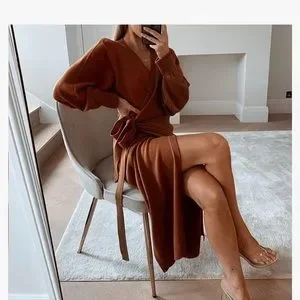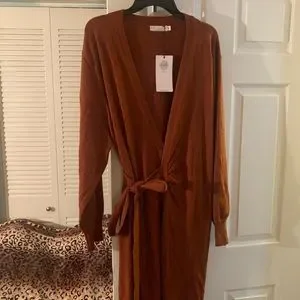 EXLURA Womens Knit Sweater Dress Casual Solid Long Sleeve Wrap Maxi Dress With Belt.