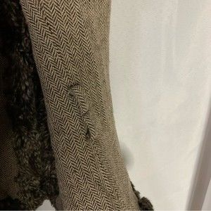 Dolce Cabo Faux Fur Brown and Tan Vest. Size Large. Great Winter Vest. Has belt loops. Wool Blend. Faux Fur. Measurements in Photos.